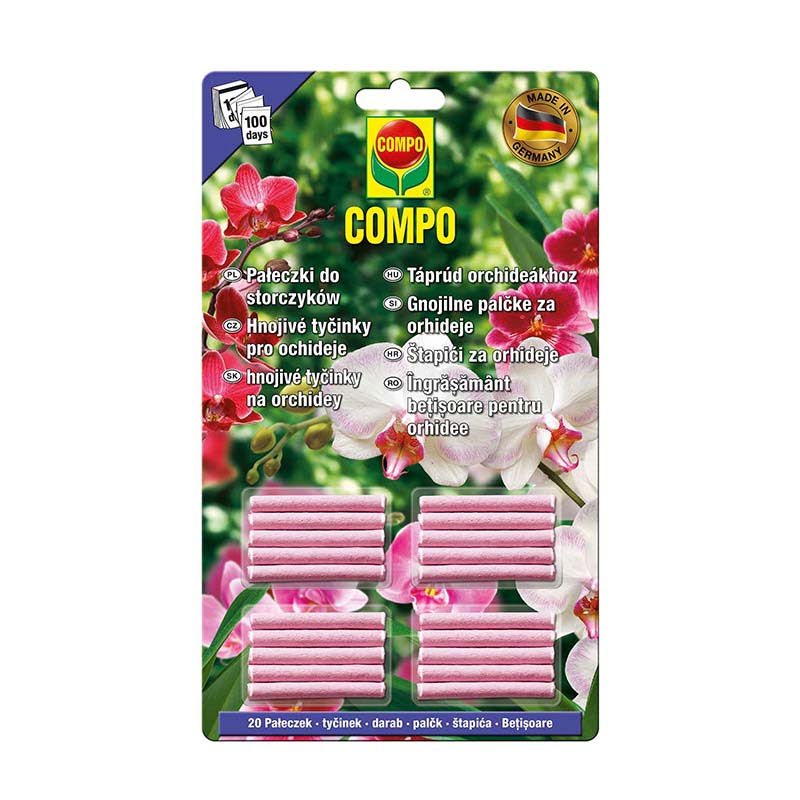 Compo gnojilne palčke za orhideje se z vnosom v tla pod vplivom vlage postopoma sproščajo v talno raztopino in z njo premeščajo v nadzemne dele rastlin. Uporabljamo jih za vse vrste orhidej! Compo gnojilne palčke za orhideje lahko uporabljamo skozi celo leto. Od marca do oktobra gnojimo vsake tri mesece s polnim odmerkom (glej preglednico), od novembra do februarja pa uporabimo polovičen odmerek. So preproste za uporabo s 3-mesečnim delovanjem.